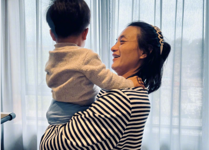 最近,她在微博发周一围的照片,也是她主动开车带孩子去剧组探班。