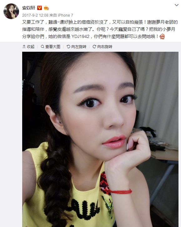 其实,安以轩今年已经38岁了,但是看起来却还是十几二十岁的样子,水嫩光滑的皮肤,满满的都是胶原蛋白,着实让人羡慕,就像她自己说的那样!