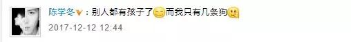 此举引得网友纷纷在留言下解释:“人家是怀了。”几分钟后,陈学冬再发一条微博委屈道:“别人都有孩子了!而我只有几条狗”。