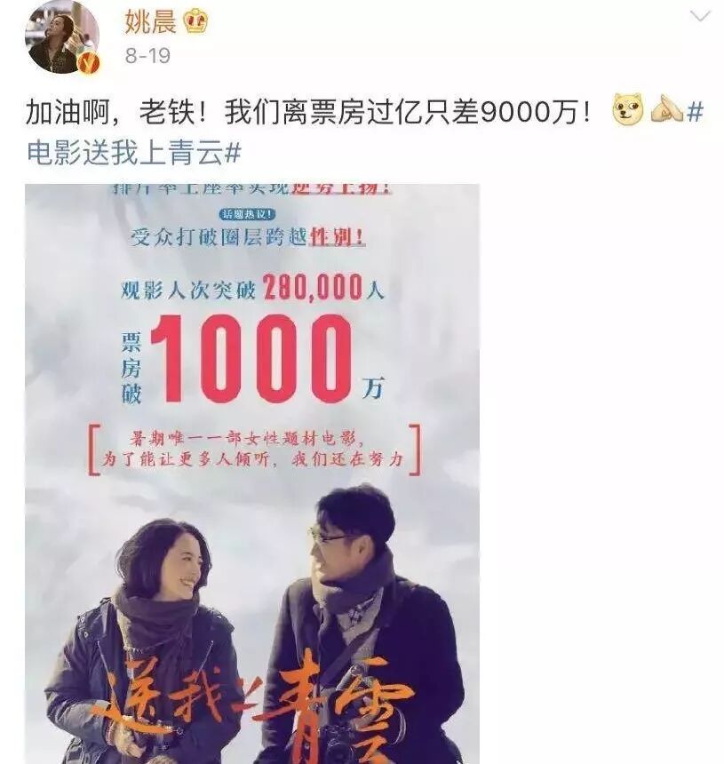 姚晨这么卖力,是因为最近她监制和主演的电影上映了,片名叫《送我上青云》。