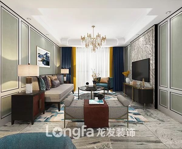 首开国风琅樾140平米现代轻奢风格设计案例--客厅