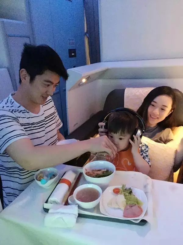 出门儿坐飞机,他也是跪坐在一边,伺候这娘俩