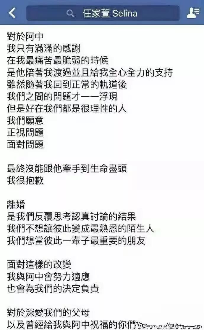 2016年3月4日,任家萱发微博对外宣布,两人将近5年的婚姻走到了尽头。