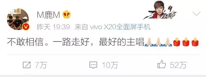 昨天,圈内很多人发了微博悼念,鹿晗、黄子韬等等。