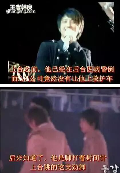 在SM的历史上,作为一个艺人,你只要是活着,哪怕不能站起来,也要在舞台上表演。神话万人召集演唱会上成员申彗星在随后的表演部分右膝半月板破碎。这次受伤给彗星带来了长久的痛苦,在以后的活动中,他时刻都忍受着膝盖的疼痛和复发的危险。最离谱的是曾经在4辑打榜的时候,坐着轮椅上台表演。一个站不起来的人还要让人家坚持在轮椅上唱动感歌曲,下肢不能动,上肢还要继续跳。听起来就觉得SM对艺人的虐待达到令人发指的程度。