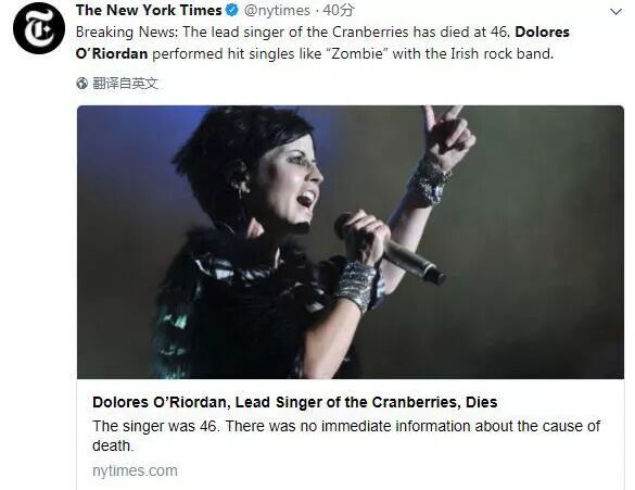 外媒对Dolores的评价一直都很高,这次意外更是全民哀悼,从爱尔兰总理到各路音乐人,更不要提广大乐迷了。