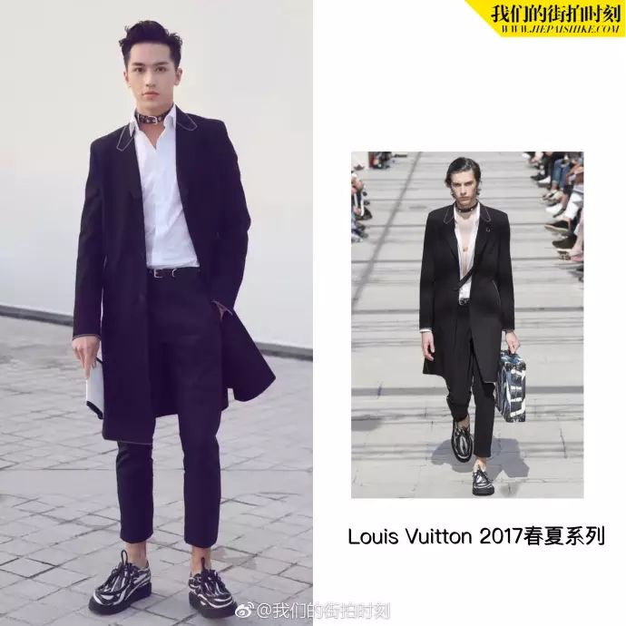 许魏洲身着Louis Vuitton2017春夏系列亮相。风衣随性潇洒,Choker别致“骚”动,给洲洲大大的赞。