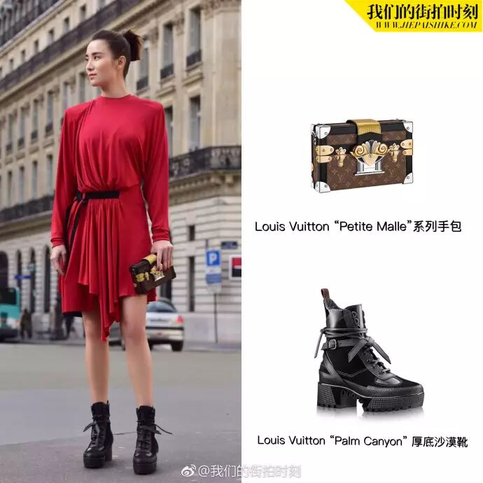 宋佳身着Louis Vuitton红色连衣裙搭配“Petite Malle”系列手包和“Palm Canyon” 厚底沙漠靴亮相。裙袂飘摇飒气十足,整体造型摩登干练。我们也会在巴黎【独家】为宋佳拍摄街拍,一起期待“时髦宋”的街拍大片吧。