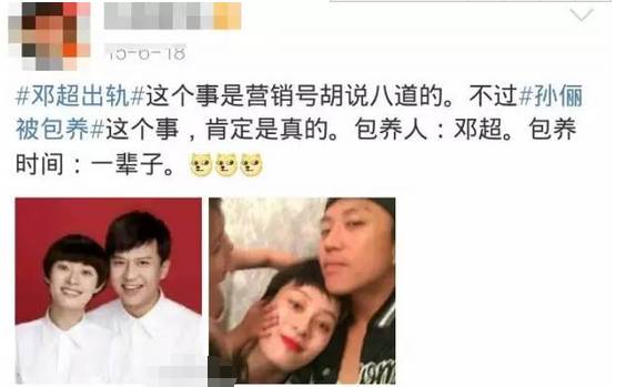 当时一条关于“某跑男出轨”的微博在网络上呈爆裂式扩散,众多营销号跟着响应,矛头直指邓超。网友们激动留言:“宁愿你出柜,也不要你出轨。”