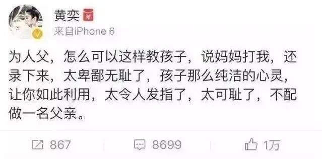 为了报复黄奕,黄毅清不止一次诱导女儿拍摄各种视频,撒谎说“妈妈打我了,妈妈又怀孕了,妈妈的男友性侵了我……”