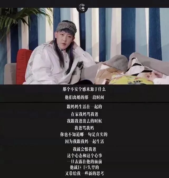 破碎的原生家庭导致姜思达从小懂得察言观色,生怕父母下一秒就要吵架,时刻想着如果大人吵架了,自己又该如何处理。
