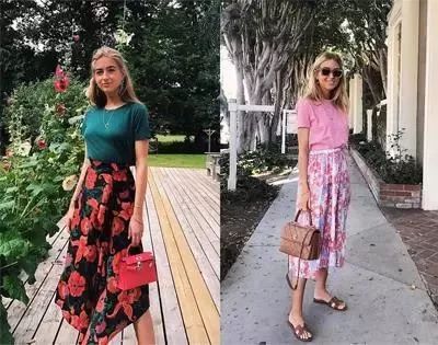 素色上衣+花色半裙的搭配,更是各国时尚博主比美的必备造型。跟换不同的半裙就能应对各种场合,百变又时髦的造型了解一下