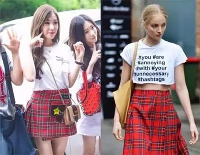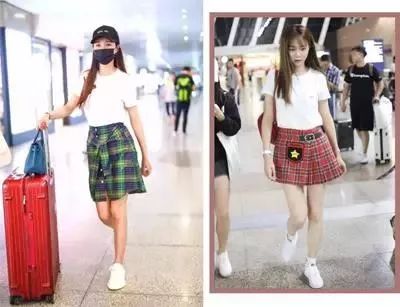 宋祖儿就用了高饱和的蓝T和红蓝半裙进行搭配,
