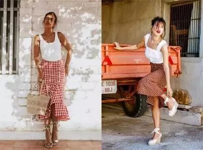 如果你对素色上衣+花裙还没什么搭配想法的话,
