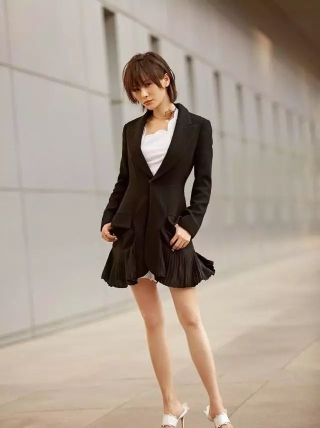 但是换上收腰的套装,踩上高跟鞋看上去立马高了十公分!