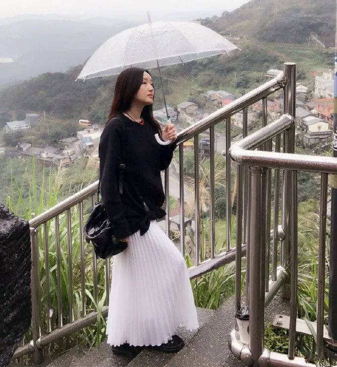 杨钰莹再也装不下去了,脸凹凹坑坑又僵硬,50岁老的一点都不真实呀,这个时候她是撑着一把透明的伞,很多人都会拿着这样的伞,出去外面拍一些照片,而且她打扮的确实看起来比较的年轻。