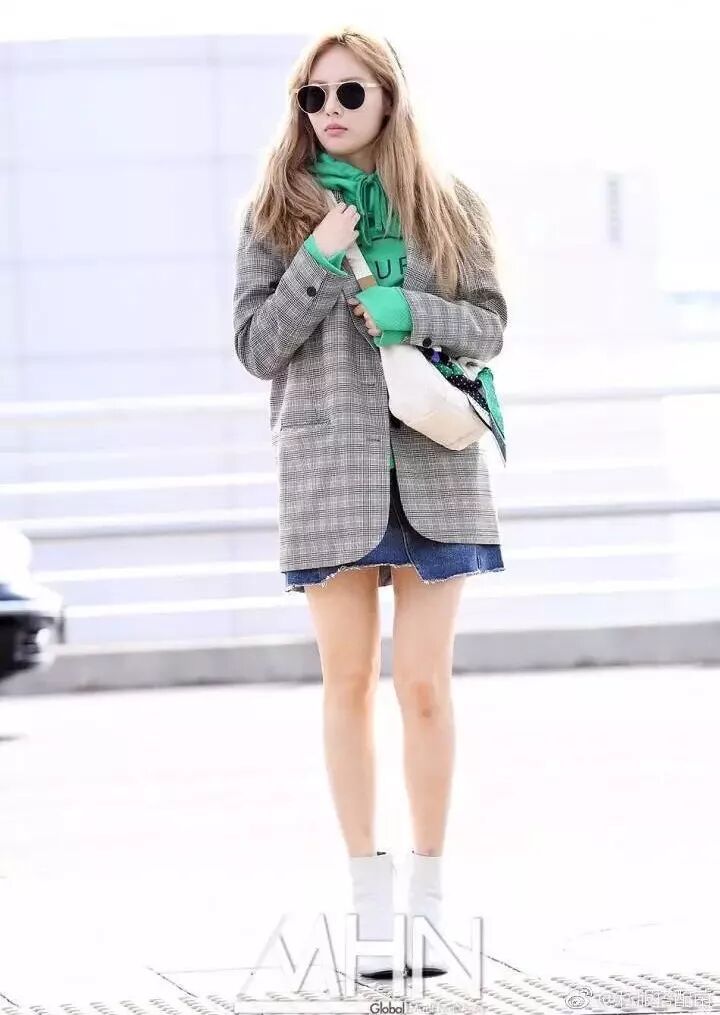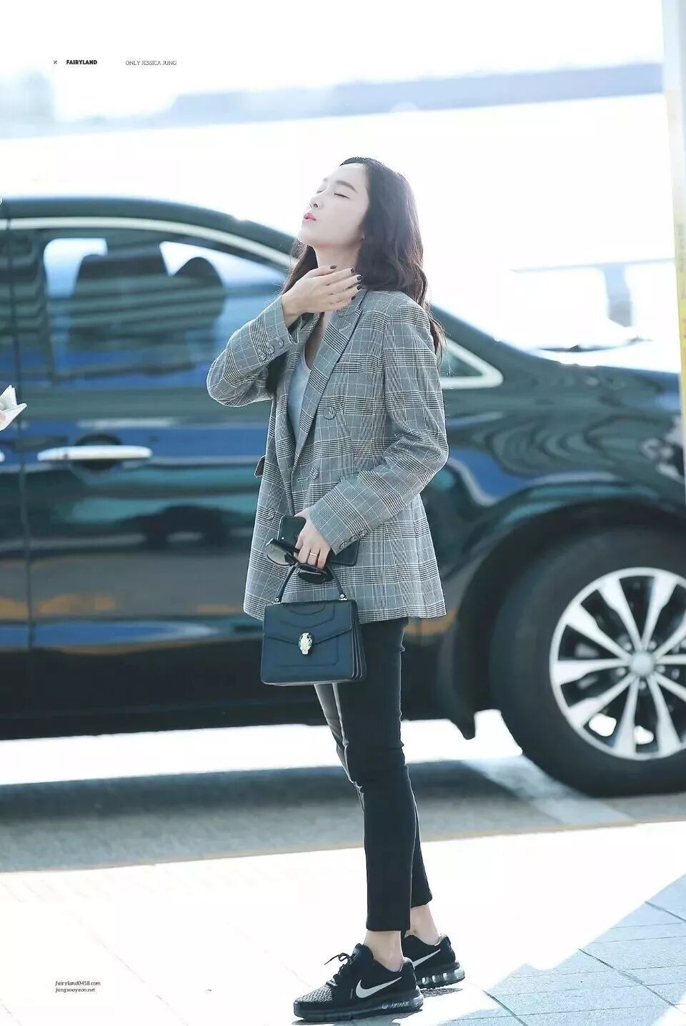 郑秀晶的姐姐郑秀妍也是出名的爱穿西装外套,这种格纹的穿过就不只一次。