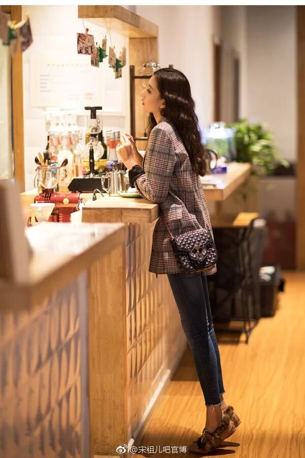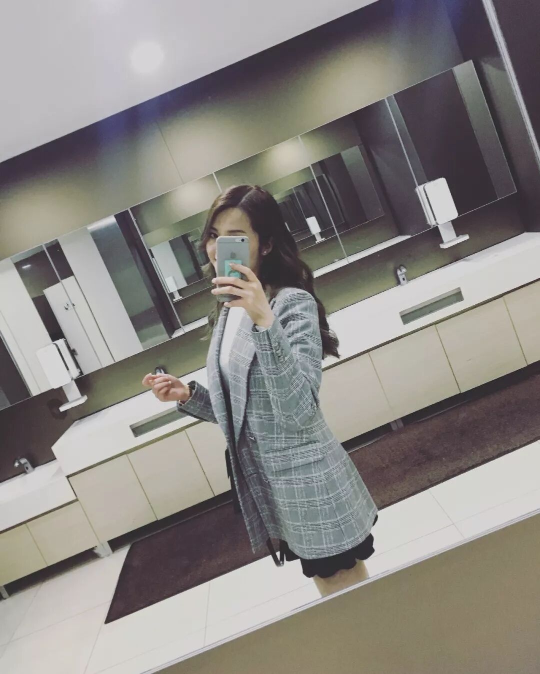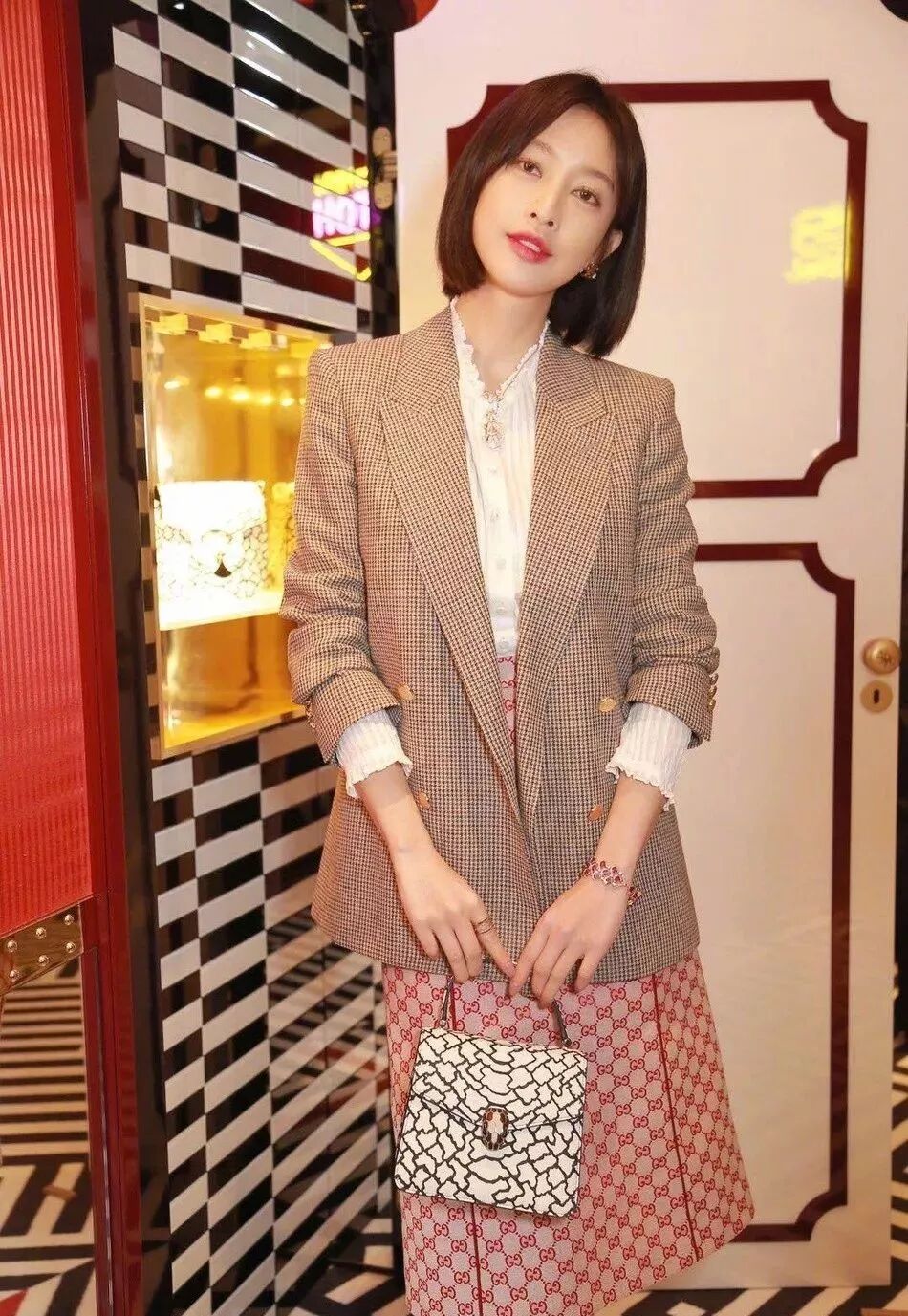 还有她最近晒的自拍穿的这件格子西装外套,局fa发现ins上好多女明星都在穿。