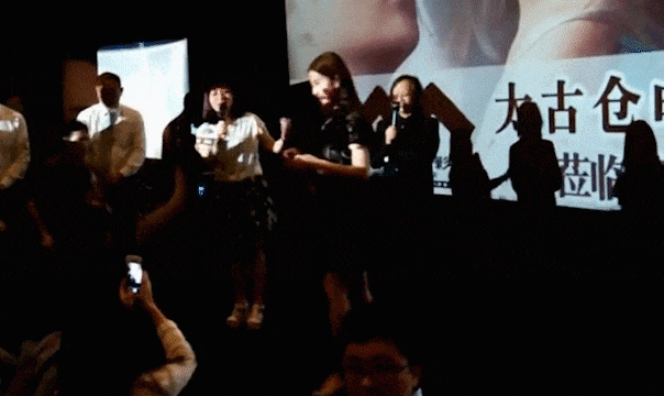 在为新作站台时,被从台下突然蹿起来的疯狂粉丝扑倒。