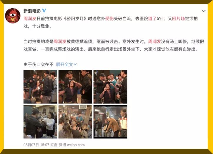 周润发拍戏受伤缝了5针,又重返片场拍戏。