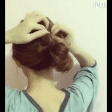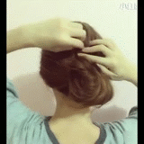 Step3:用手指挑一缕发束,然后扭转发束两次,最后用发夹固定。