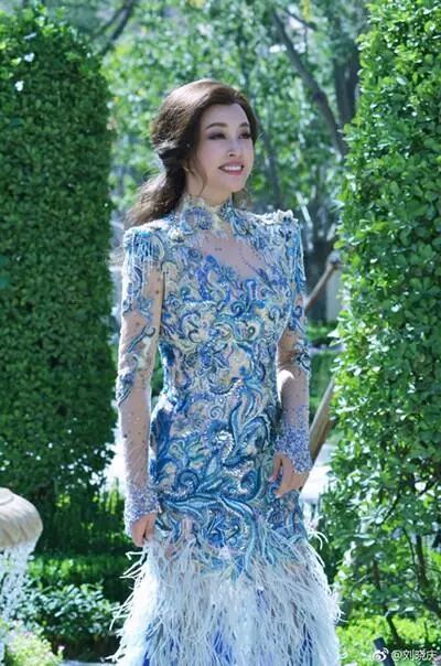 刘晓庆一身刺绣连衣裙,尽显女性魅力,修身的款式,身材凹凸有致,女神不仅颜值高,身材也超好。透视的设计,非常性感,整体温婉又优雅,可谓真女神呀!