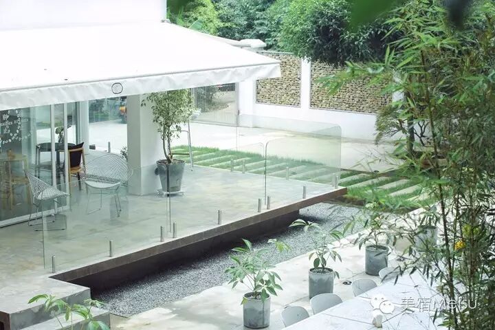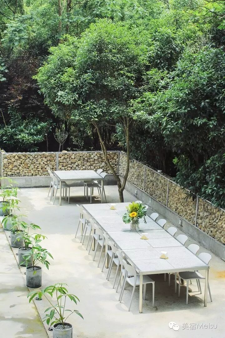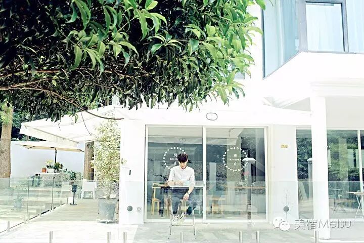 的确,我也是冲着这两位达人来一探究竟的,毕竟,即便我们心怀美梦,现实却常常不肯成全。途径西湖,不到5分钟就到了,隐在马路一侧的树林后面,很好寻觅,又很安静。初见它时,就觉得有几分与众不同,不是原木白墙,而是由落地玻璃和大片纯白组成的屋舍,在初夏的光影中,在树林的掩映下,十分唯美。