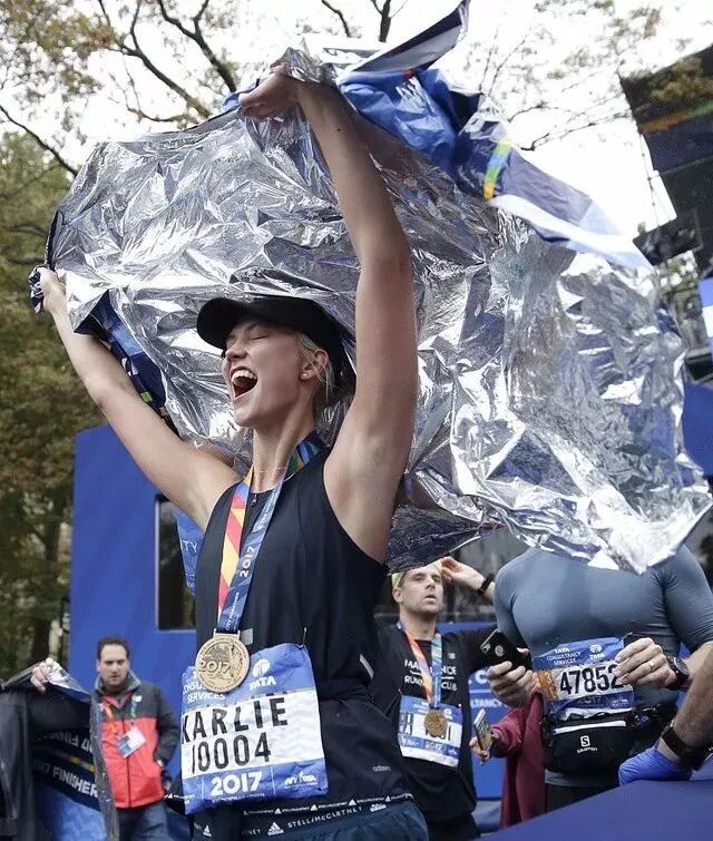 不管做什么,她都全力以赴,前几天的纽约马拉松上,她也轻松跑下全程,还拿了块奖牌。