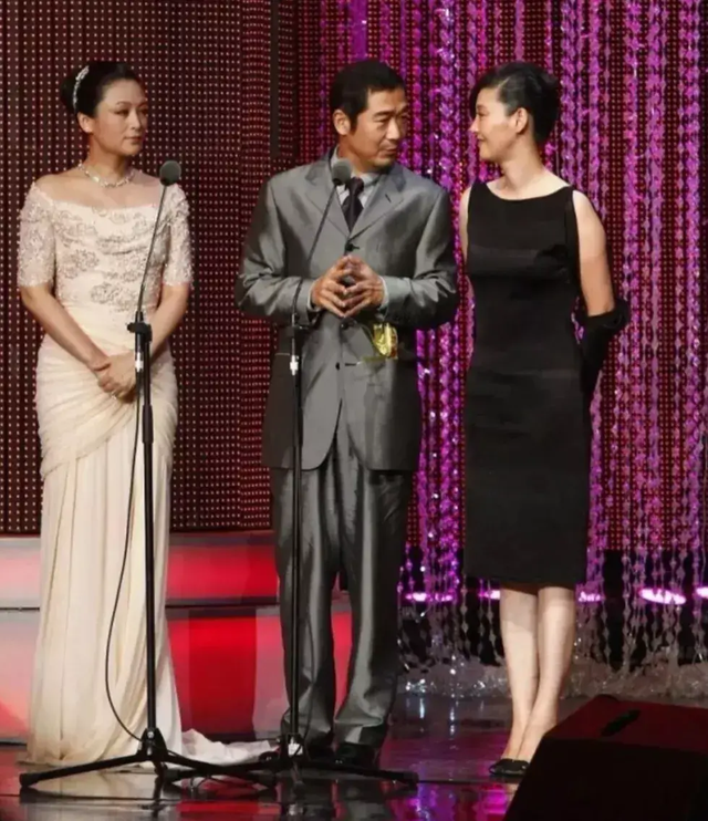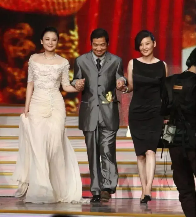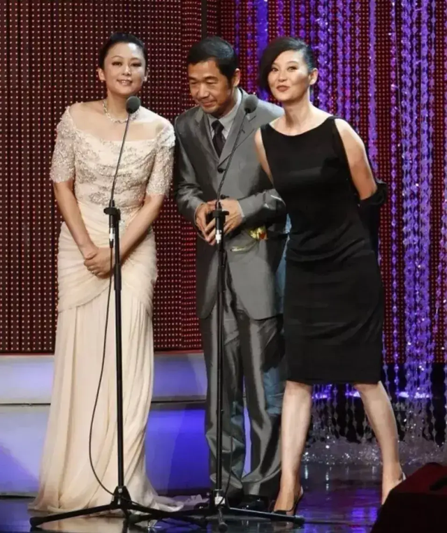 两个名导演的妻子同框,陈红和徐帆穿一黑一白,气质差别一目了然,不得不说陈红真是挺富态的,一袭长裙好雍容,却被徐帆的杀马特发型抢镜了。