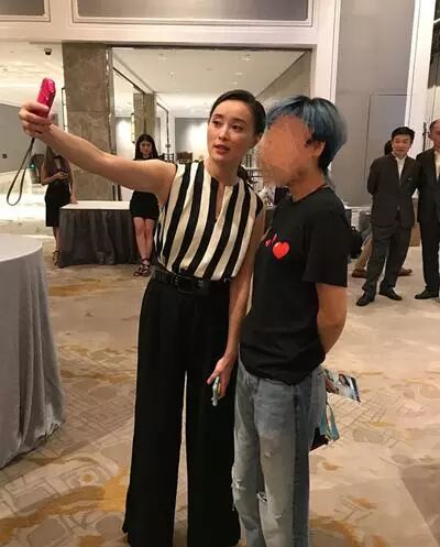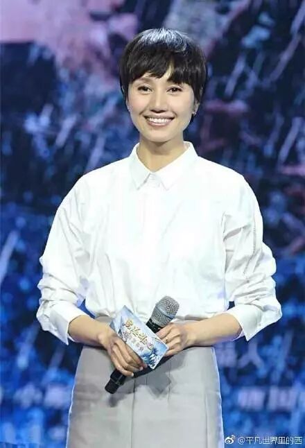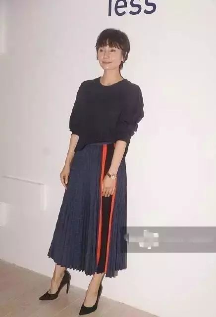 私下吴越可是亲近人呢,素颜的状态也很好,穿竖条纹和阔腿裤,分分钟给人大长腿的既视感,这种低马尾的发型也是接地气了。