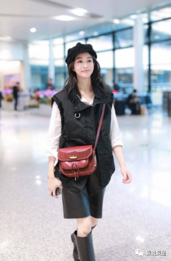 张钧甯内穿白色衬衫,清新洁净,衣袖卷起,暴露纤长小臂线条,增加几分精悍爽利气质,外搭玄色马甲,大气沉稳中不乏潮水范儿,下身穿戴一条玄色的皮系短裙,脚蹬玄色长筒靴,高低照应,很酷帅有型,腰间血色小包的搭配,提亮整体视感,时兴亮丽,搭配淡淡的素雅妆容,略带小清新气味。