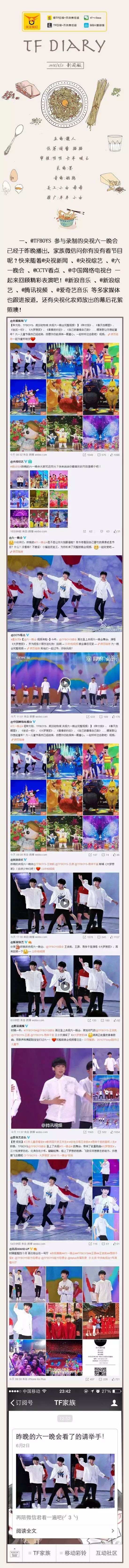 TFBOYS』TF日报 -不负责任组>>2016<<0602期 TF日报不负责任组 内地男星 2016-06-03 10:09:35 626 创作不易,用心坚持,欢迎请BaGua喝几杯爱心咖啡!打赏并支持本文 打赏并删除本文 #TFBOYS# #TF日报(不负责任组)# 【2016/06/02】@TFBOYS组合 参与录制的央视六一晚会已经于昨晚播出啦!没赶上的小伙伴快补起来!@studiosix 公布了时尚芭莎的拍摄花絮,真是帅的一脸血啊啊啊!@舒肤佳Safeguard 发布广告拍摄花絮视频,boys真是萌萌哒!打榜不要停! 创作不易,用心坚持,欢迎请BaGua喝几杯爱心咖啡!打赏并支持本文 打赏并删除本文 感谢您的支持鼓励,我会继续努力的!文章地址:用户邮箱:打赏金额:USDT 请输入数字点击”去打赏“,即可进行打赏支持本文章哦 tfboys About the Author TF日报不负责任组 功能介绍:微博@TF日报-不负责任组 每日一报★投稿邮箱: [email protected] 因为关注,所以疯狂(划掉,差评)高冷. Related Posts 『TFBOYS』TF日报 -不负责任组>>2018<<1206 2018-12-07 18:49:11 『TFBOYS』TF日报 -不负责任组>>2016<<0609期 2016-06-10 12:48:01 TFBOYS』TF日报 -不负责任组>>2016<<0602期 2016-06-03 10:09:35 『TFBOYS』TF日报 -不负责任组>>2016<<0418期 2016-04-19 13:08:22 『TFBOYS』TF日报 -不负责任组>>2016<<0405期 2016-04-06 12:22:42 发表评论