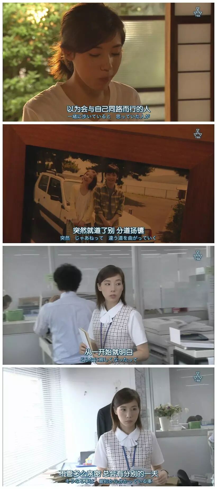发现此类日剧有个特点,角色们都特别喜欢发表感慨,喜欢讲道理,说些很“哲理”的话。但是好在说这种台词还在我的接受范围之内,甚至有点喜欢,或许是因为演员表演比较自然,外加日语不是母语的缘故,因此不会出戏。从这些台词里感受日本的生活美学。