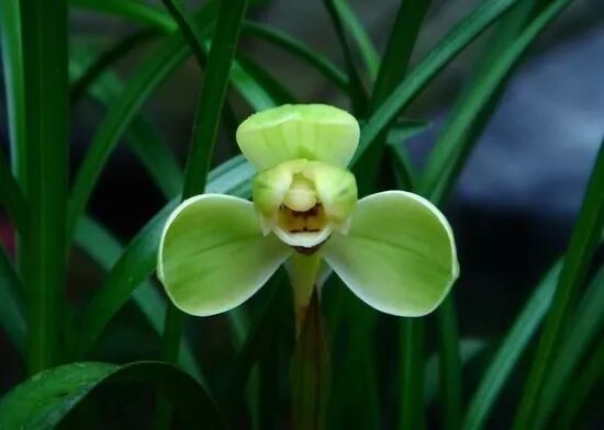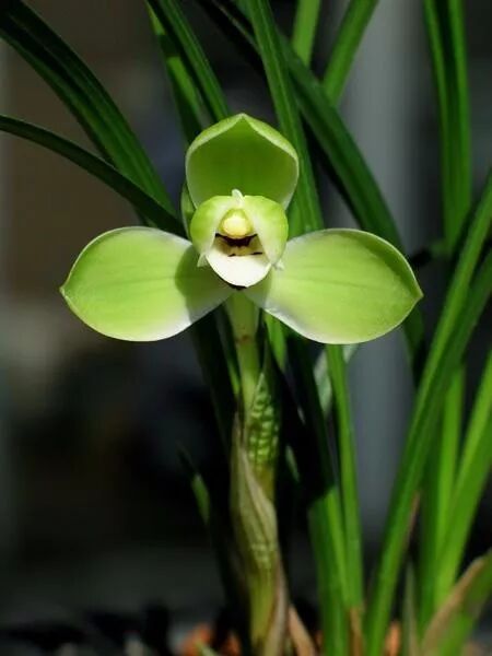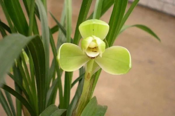 群芳谱云,紫茎赤节,苞生柔荑,叶绿如麦门冬,而劲健特起,四时常青,光润可爱,一荑一花,花生茎端,黄绿色,中间瓣上有细紫点。幽芳清远,馥郁袭衣,弥日不歇,常开春于初,虽冰霜之后,高深自如,故江南以兰为香祖,又云,兰无偶,称为第一香。
