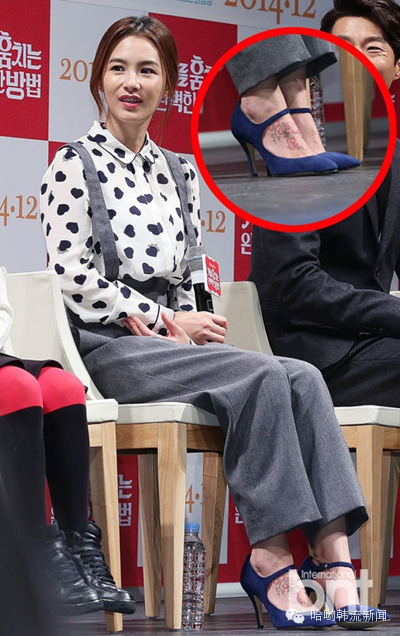 姜惠贞脚背的花纹身也非常引人注目。