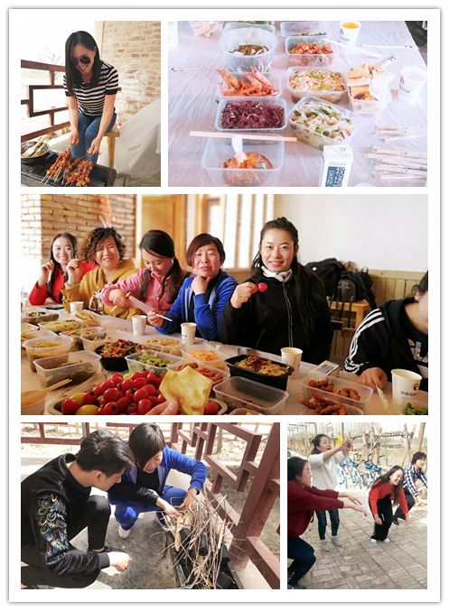 春风拂过,柳絮飘扬,欢声笑语与春天一起律动,老师们的自带食物分享、游戏互动、自助烧烤。