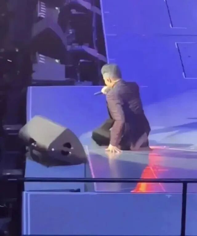 不想摔倒后,张学友立马站起来继续演唱,然后才向观众表示道歉。