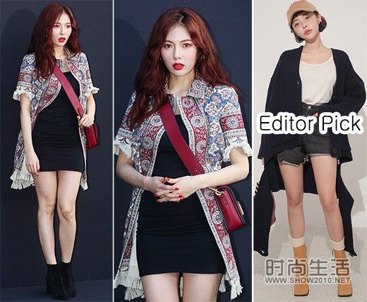 她每次的公开亮相都会给大众展示时下最时髦的时装,无论是在正式场合登场还是在音乐节目的排练现场,她的多样造型对韩国的流行趋势产生了影响,令她被越来越多的人视为“时尚达人”。下面就以她最近亮相时所穿的私服为范本,让你学会如何打造性感又时髦的造型。