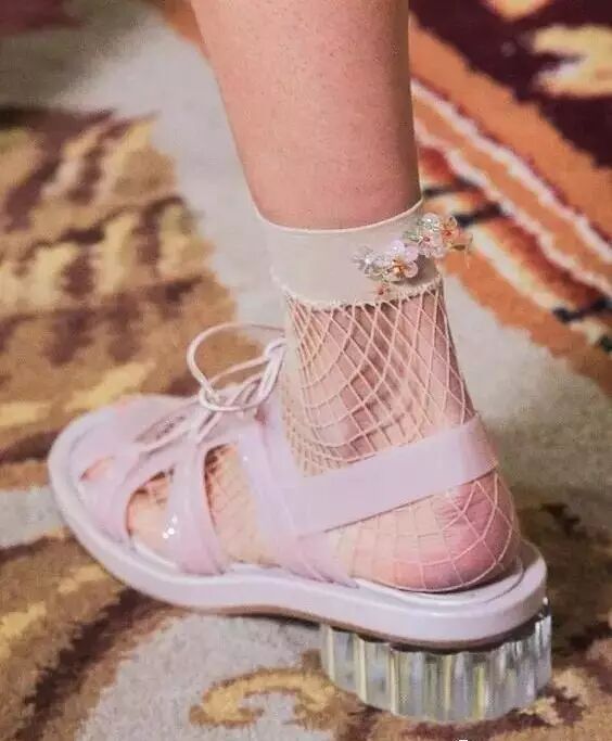 渔网袜能回归还是得亏了这几年的复古风潮,什么90年代的运动服啊,奶奶辈穿的天鹅绒啊都是现在流行的。