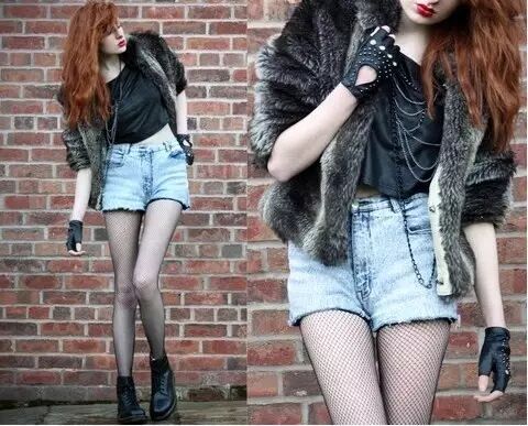 渔网袜一直都是“性感”的代名词,加入了朋克元素后则显得更加叛逆,画个烟熏妆,一件皮衣加一条短裙火短裤,你就可以嗨翻夜场啦。