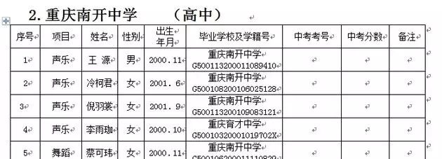 据6月16日公布的《2016年重庆市中学生艺术团招生拟录取名单》显示,在声乐组别中,王源位列重庆南开中学(高中)拟招收名单第一位。