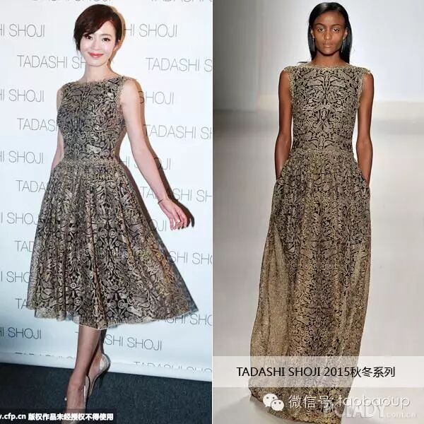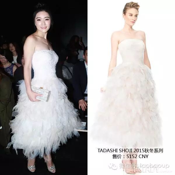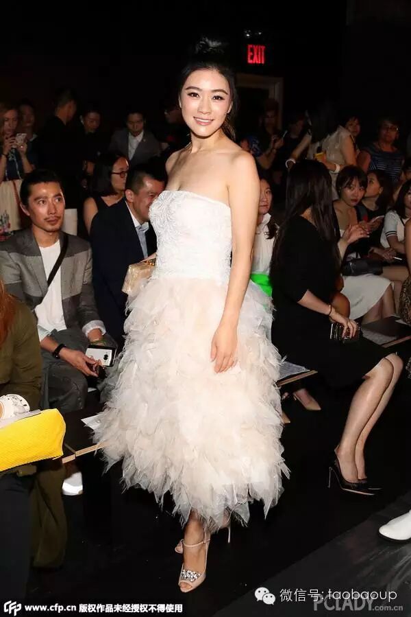 刘希媛的造型真是各种撞张静初和侯佩岑,甜美气质搭配这套Tadashi Shoji镂空印花裙无违和,珠光跟鞋也到位得体,时装周初亮相没什么槽点可挑~