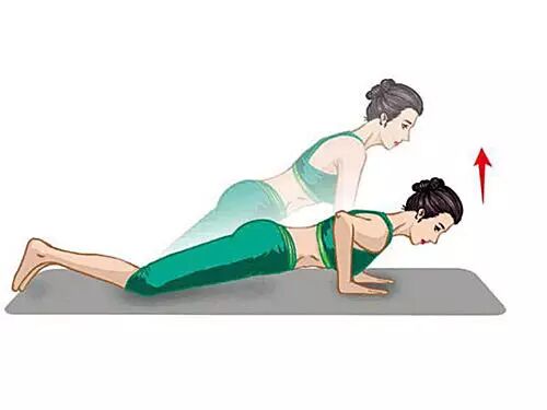 如果力量不够,可以从高处比如桌子开始,逐步向下撑,量力而行。随呼吸做8~15次动态动作。