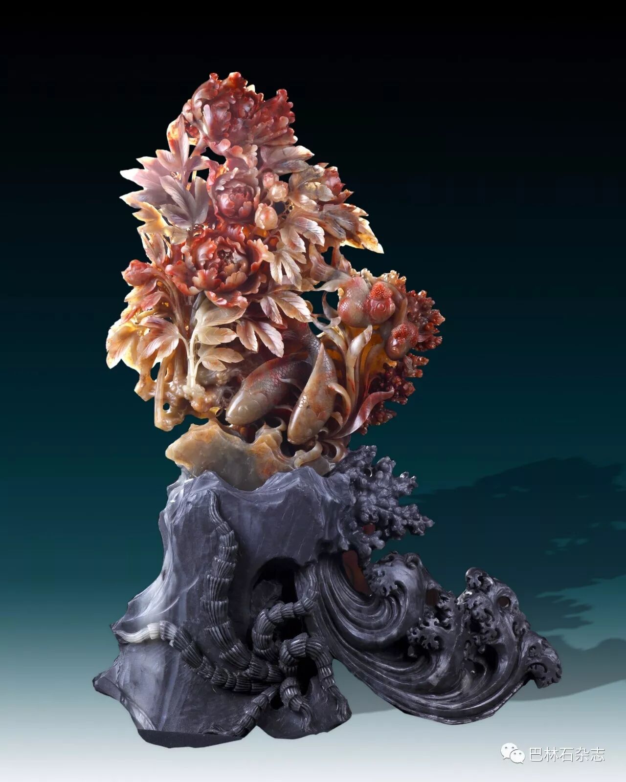 王景春先生擅长鱼雕作品,同样是传统的题材,他耐心的研究,不断创新,把鱼的神态,随水游动的鳍尾刻画的惟妙惟肖,把鱼雕作品发挥得淋漓尽致。2010年景春工作室迁址到赤峰,随着业务的繁忙,他感觉到技艺的瓶颈,还有雕刻自己思想的作品时间特别少。这种情况下义无反顾放下刻刀,到南方樟林村学习,从修光做起,和许多大师学习了不同石材的雕刻,从印钮到花鸟虫
