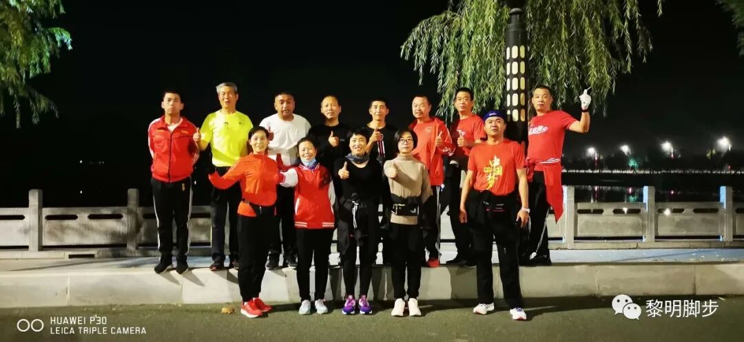 ●郑州黎明脚步雕塑公园队奥体约跑:秋冬之际,队友相约外出跑。五点起,五十多人,拼车塑雕。多辆汽车乘坐满,黎亲健身热情高。塑胶跑道还分三速,圈圈绕。天不明,凉风啸。队伍长,黎旗飘。按照惯例,集体热身先慢摇。相亲相爱一家人,团结向上氛围好。快乐跑步不忘初心,要记牢!