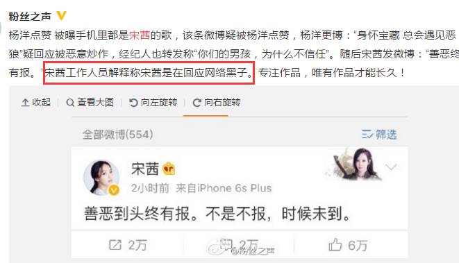 反正据宋茜的工作人员回应称,是在回应网络黑子。