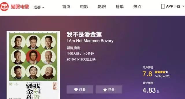▲《我不是潘金莲》最终收获4.83亿元票房(图片来源:猫眼电影)