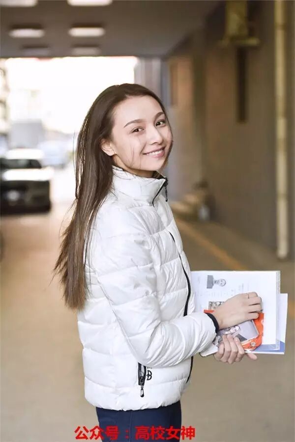 穿着简单的白色羽绒服,几乎素颜的样子清纯又动人,笑起来鼓鼓却不突兀的苹果肌显得hin有元气。
