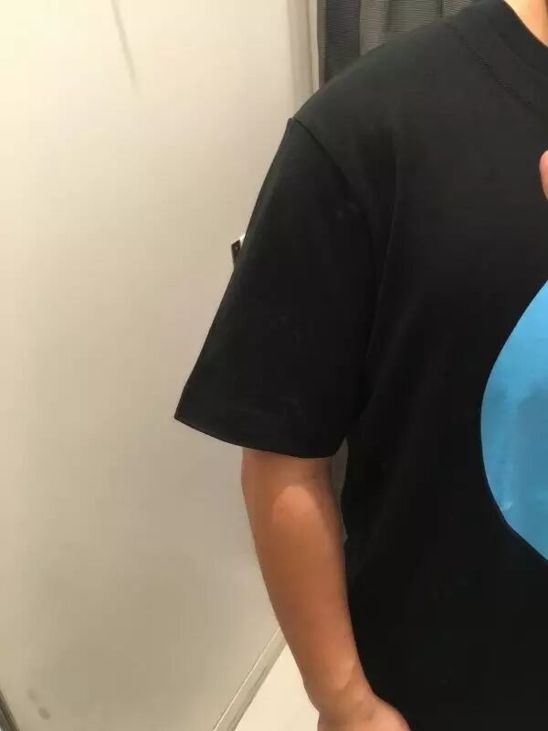用横向的印花加宽肩部,同时图案抢眼也会弱化大头粗脖的存在感。但是要注意领子不能太小。