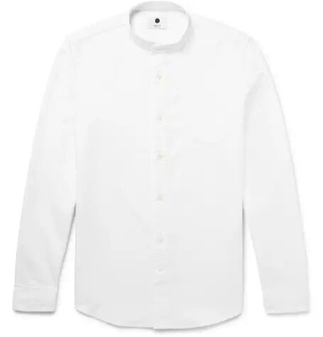不过要特别提醒一下,有领子的衣服还得注意一下领型,尽量选领子小一点以及角度偏纵向的领子,小立领/尖领/botton-down最好,宽角领/圆角领/翼形领就不太合适,横向扩张可能让脖子存在感更强。另外穿的时候尽量穿解开上面两粒扣子,让V型更V一点,效果更佳。